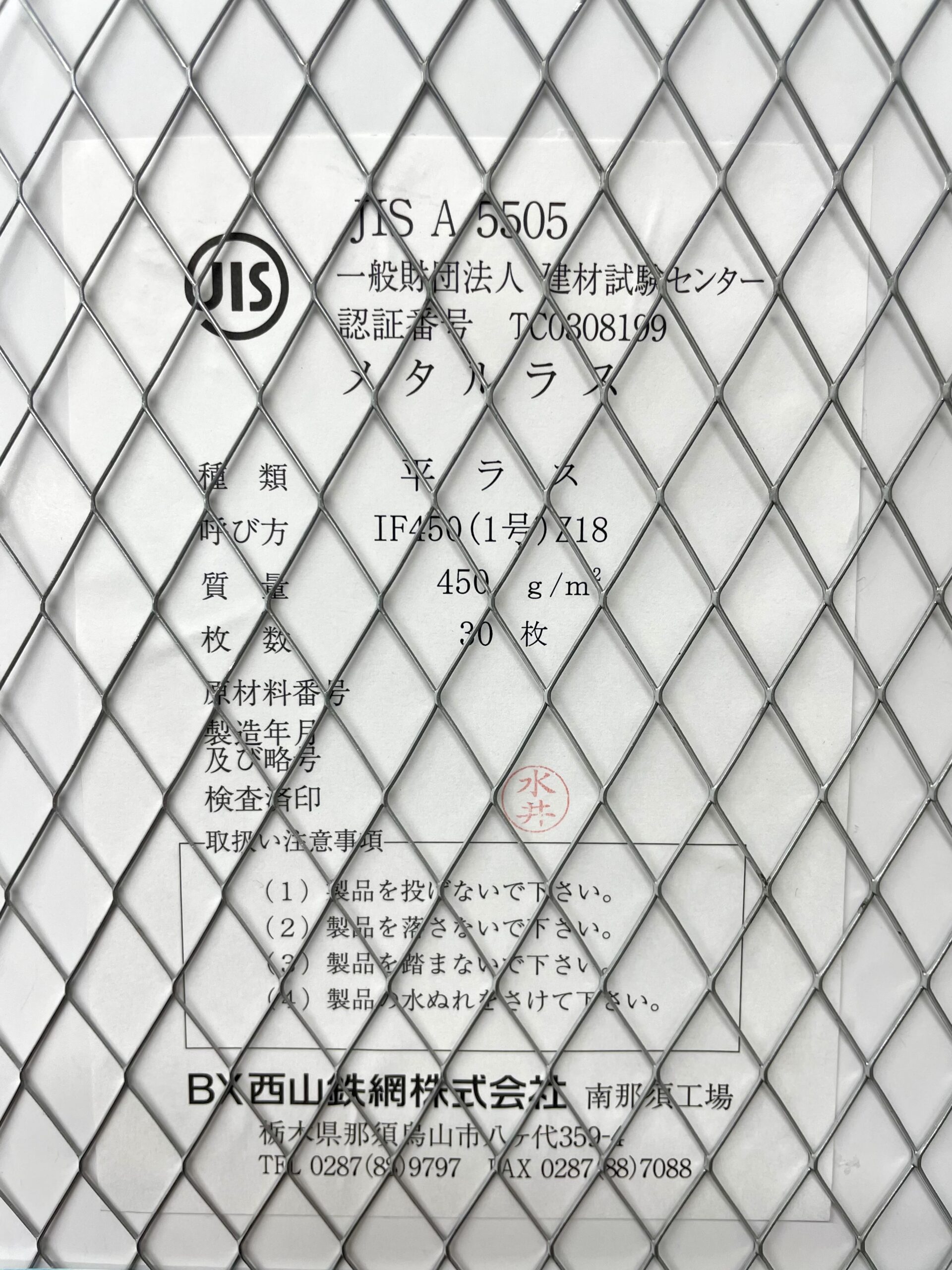 | JIS規格外品 | 平ラス0号 | JIS0 | 亜鉛鉄板 | 350 | 10坪(30枚) | ||||